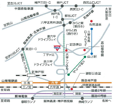 阪急六甲駅より六甲山山頂記念碑台行きバス→丁字ヶ辻バス停下車すぐ